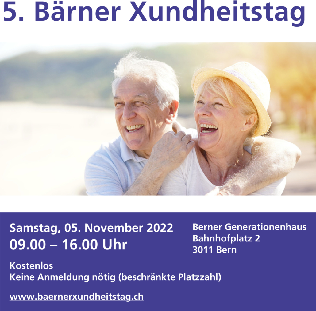 5. Bärner Xundheitstag im Berner Generationenhaus am Samstag, 05. November 2022 von 09.00 bis 16.00 Uhr ohne Anmeldung.
