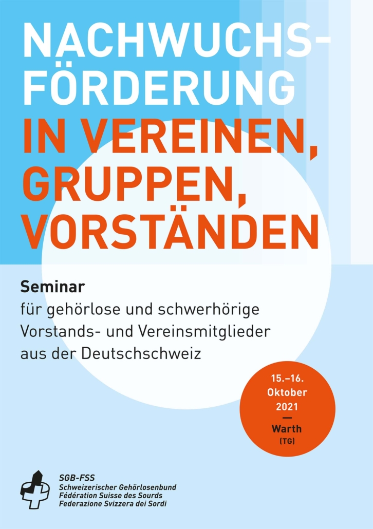 Der Schweizerische Gehörlosenbund SGB-FSS organisiert ein Seminar für gehörlose und schwerhörige Interessierte, Vereins-, Gruppen- und Vorstandsmitglieder, die sich dem Thema «Nachwuchs» stellen wollen.