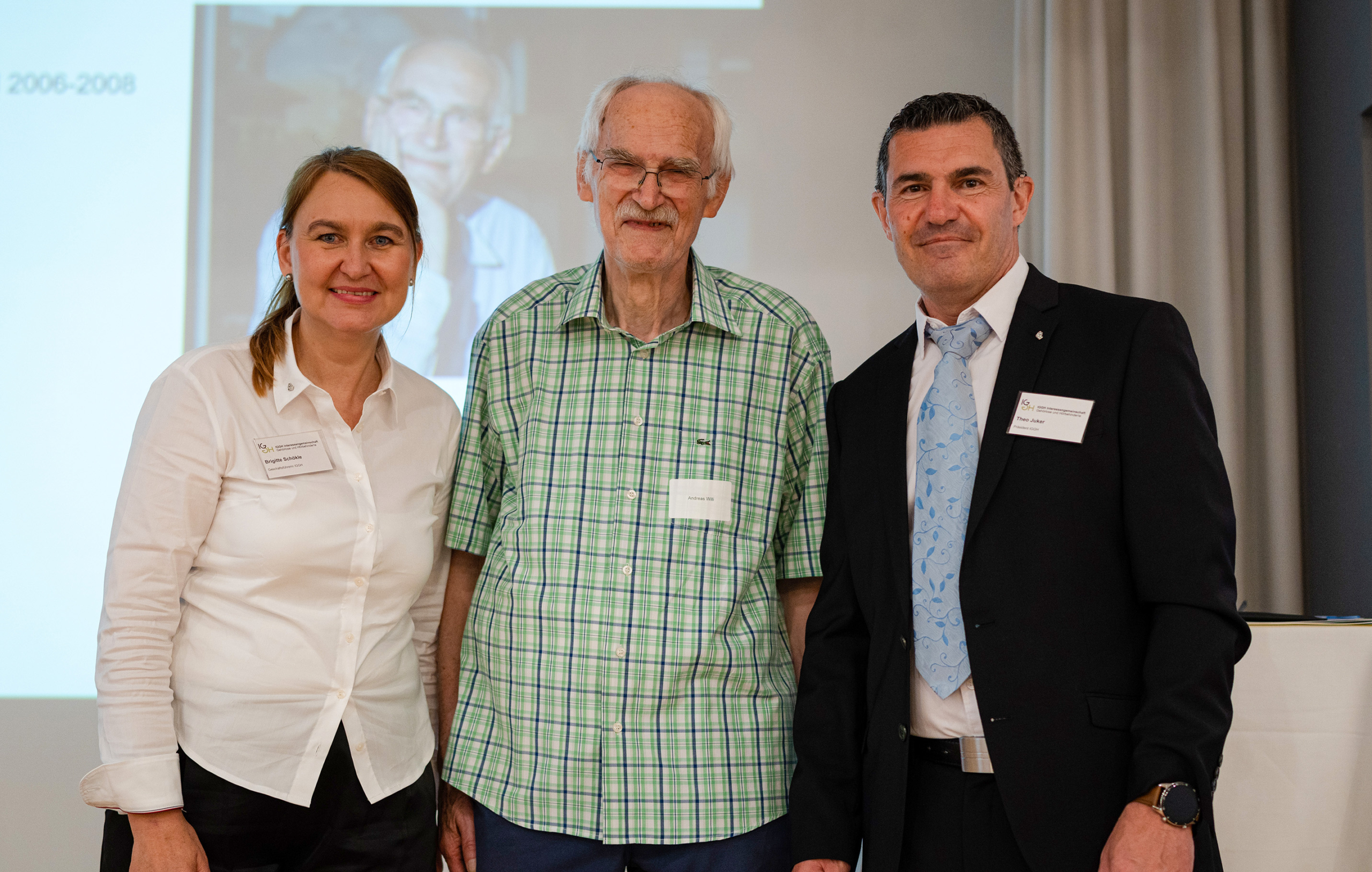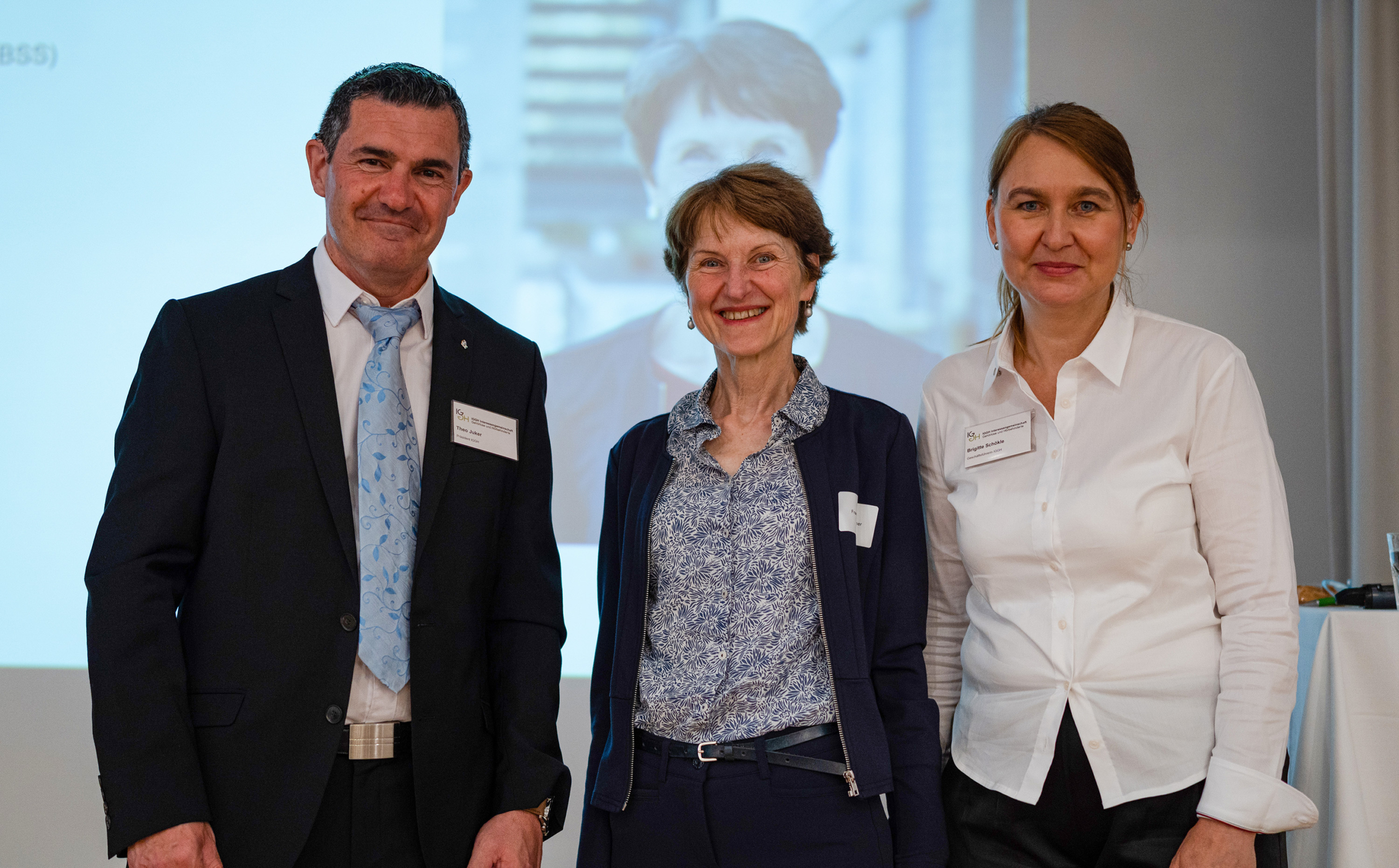 - Andreas Willi (Mitte), ehemaliger Präsident der IGGH, eröffnete die Mitgliederversammlung, flankiert von Brigitte Schökle, Geschäftsführerin IGGH und Theo Juker, Präsident IGGH