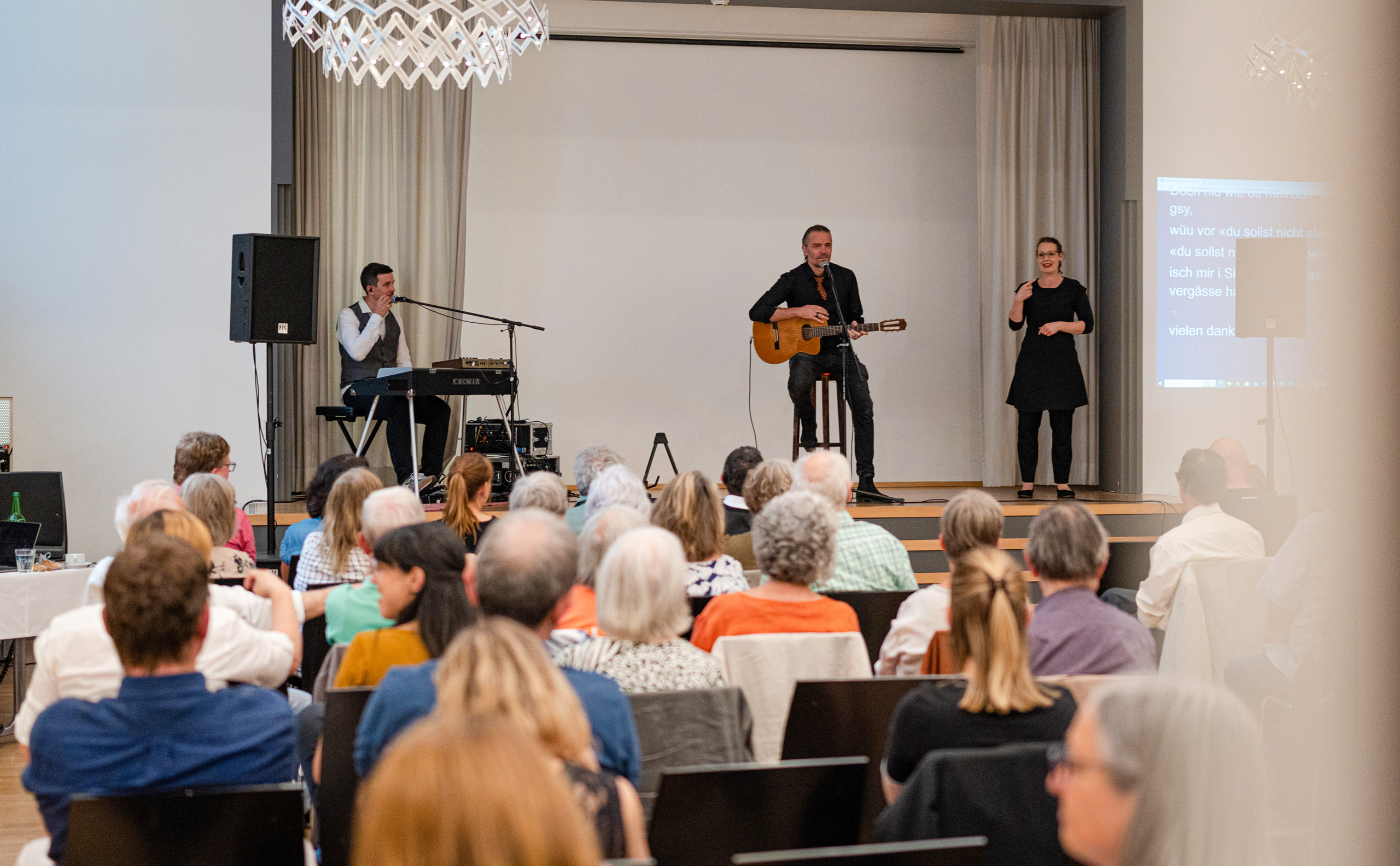 - Das Oli Kehrli Duo unterhielt uns mit einer eingängigen und humorvollen Auswahl von Berner Chansons, in Gebärdensprache übersetzt.
