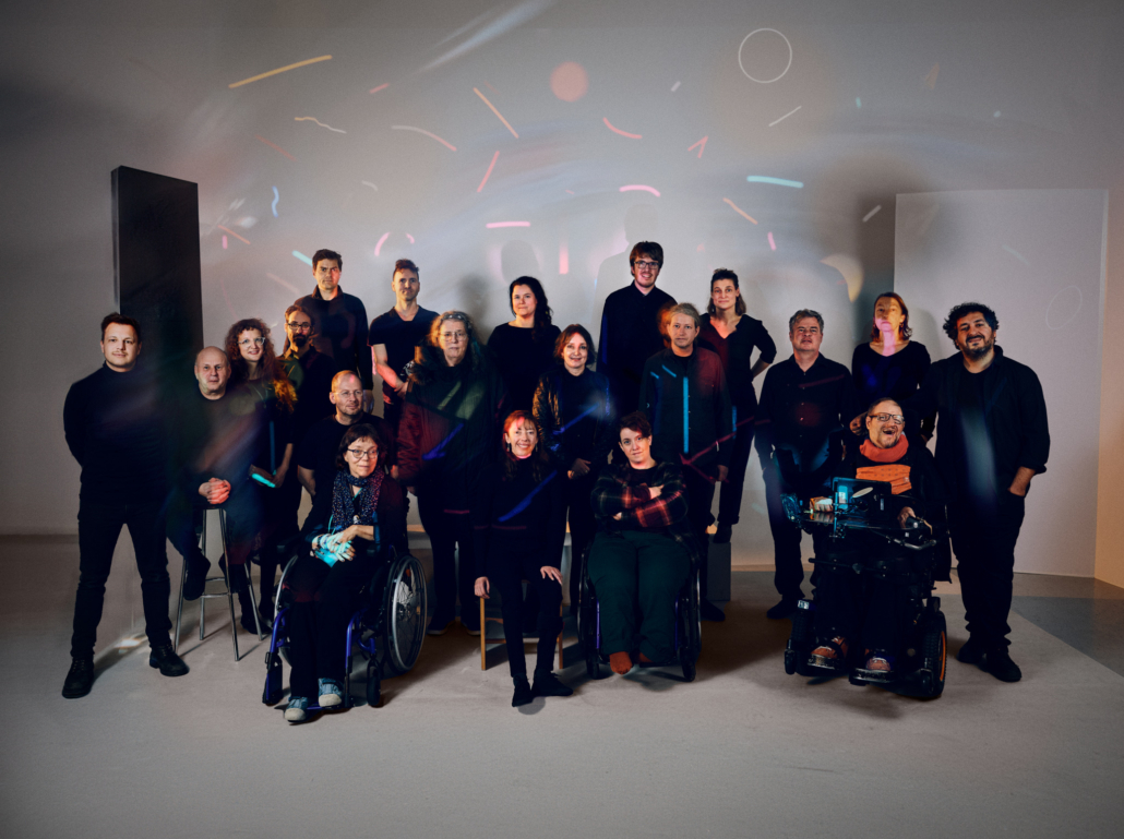 «The Big Ensemble» vereint ein vielfältiges Kollektiv aus kreativ tätigen Gruppen und Einzelpersonen mit und ohne Behinderungen, Migrationshintergrund sowie unterschiedlicher Genderzugehörigkeit. Gemeinsam setzen sie sich mit performativer Kunst, Inklusion und Zugänglichkeit auseinander. Das Projekt erkundet innovative Ansätze der Inklusion aus kompositorischer, organisatorischer und technologischer Perspektive.