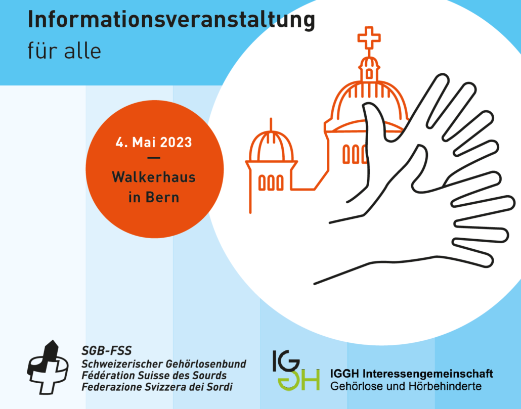 Wir laden alle zur Informationsveranstaltung vom 04. Mai 2023 ein. Mit Gebärdensprachdolmetschdienst DSGS und induktiver Höranlage.