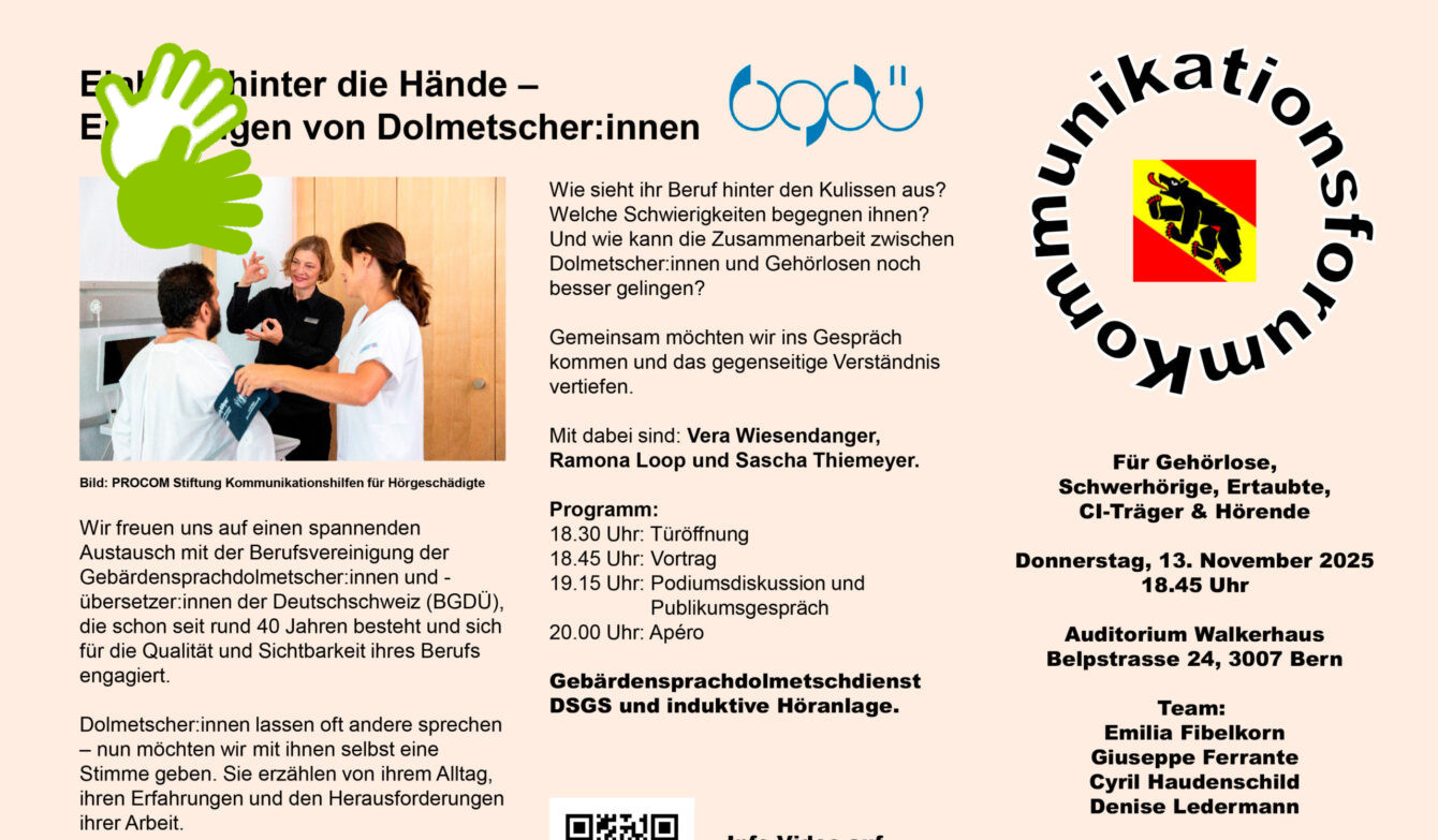 Wie sieht ihr Beruf hinter den Kulissen aus? Welche Schwierigkeiten begegnen ihnen? Und wie kann die Zusammenarbeit zwischen Dolmetschenden und Gehörlosen noch besser gelingen?