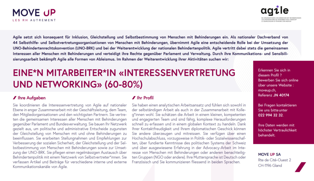 eine:n Mitarbeiter:in «Interessenvertretung und Networking» 60-80%