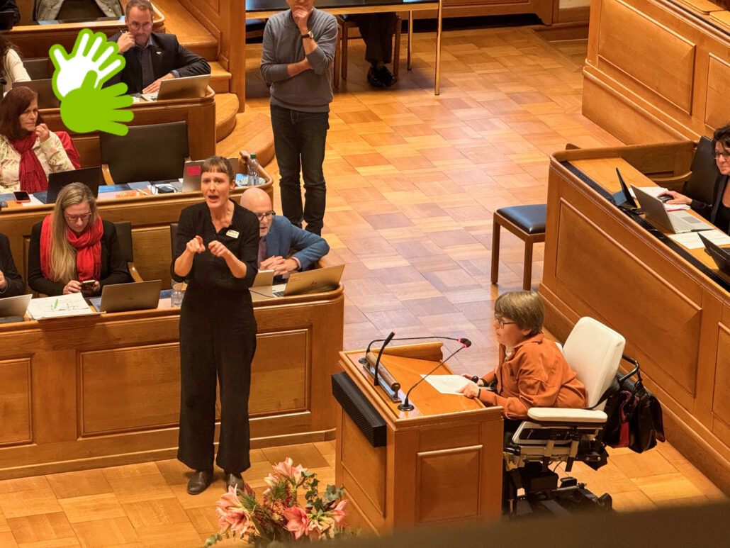 Ein historischer Moment im Berner Rathaus: Inklusion stand im Zentrum der Debatte. Am 24. November 2025 diskutierte der Grosse Rat Bern die Motion «Chancengleichheit und bessere Teilhabe für gehörlose und hörbehinderte Menschen». Eingereicht von Maya Weber Hadorn (SP), mitunterzeichnet von Simone Leuenberger (EVP), Michael Ritter (GLP), Anna de Quervain (GRÜNE) und Christian Hügli (SP).