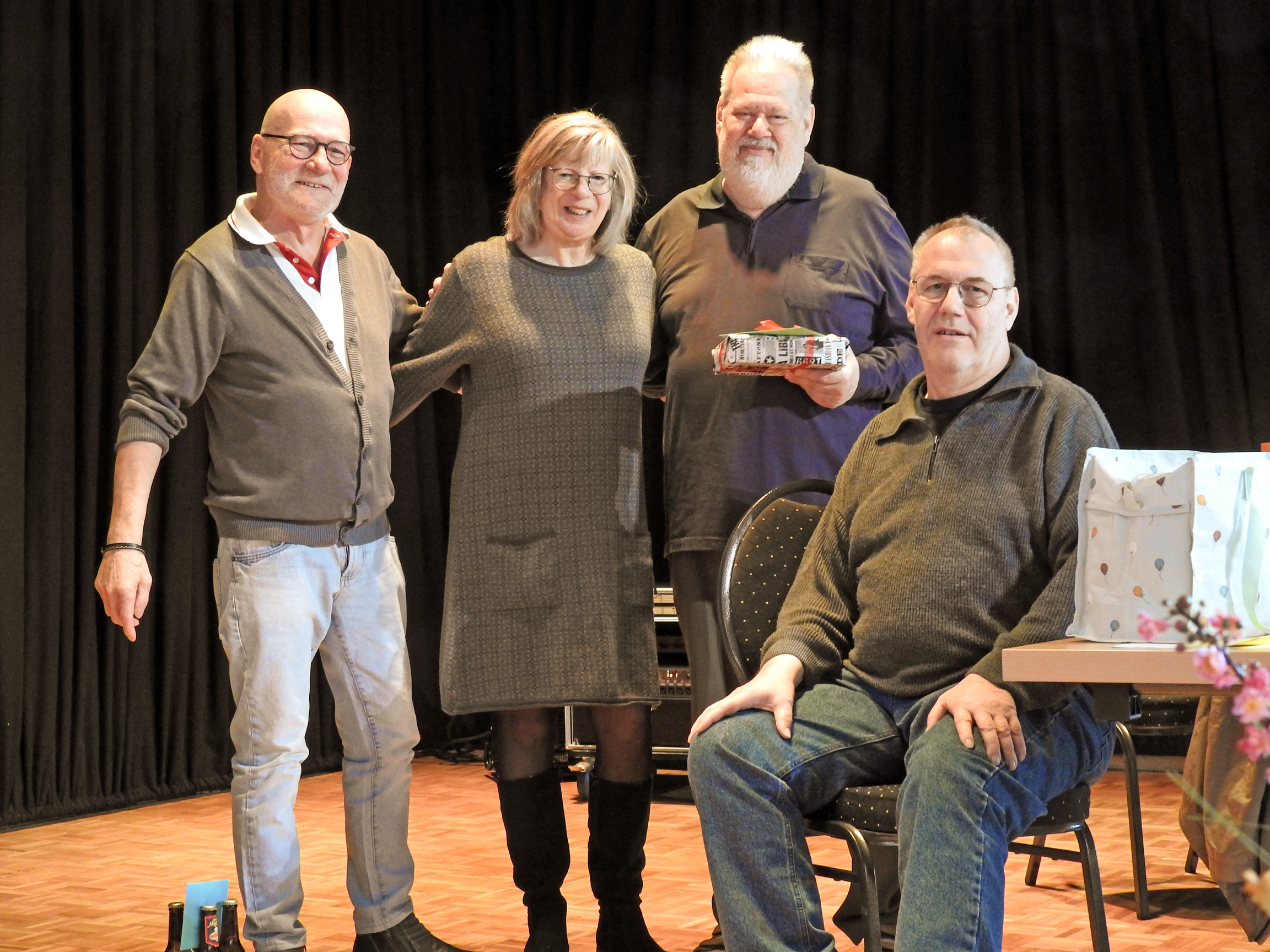 Der zurückgetretene Präsident Daniel Lehmann amtete während 7 Jahren. Ebenfalls nicht mehr zur Wahl standen Heinz Roos (Finanzen), Fritz Salzmann (Beisitzer), Stefan Emmenegger (Beisitzer und Webmaster, nicht im Bild), die alle von den Mitgliedern ein Geschenk erhielten. Franziska Roos bleibt dem Vorstand erhalten.