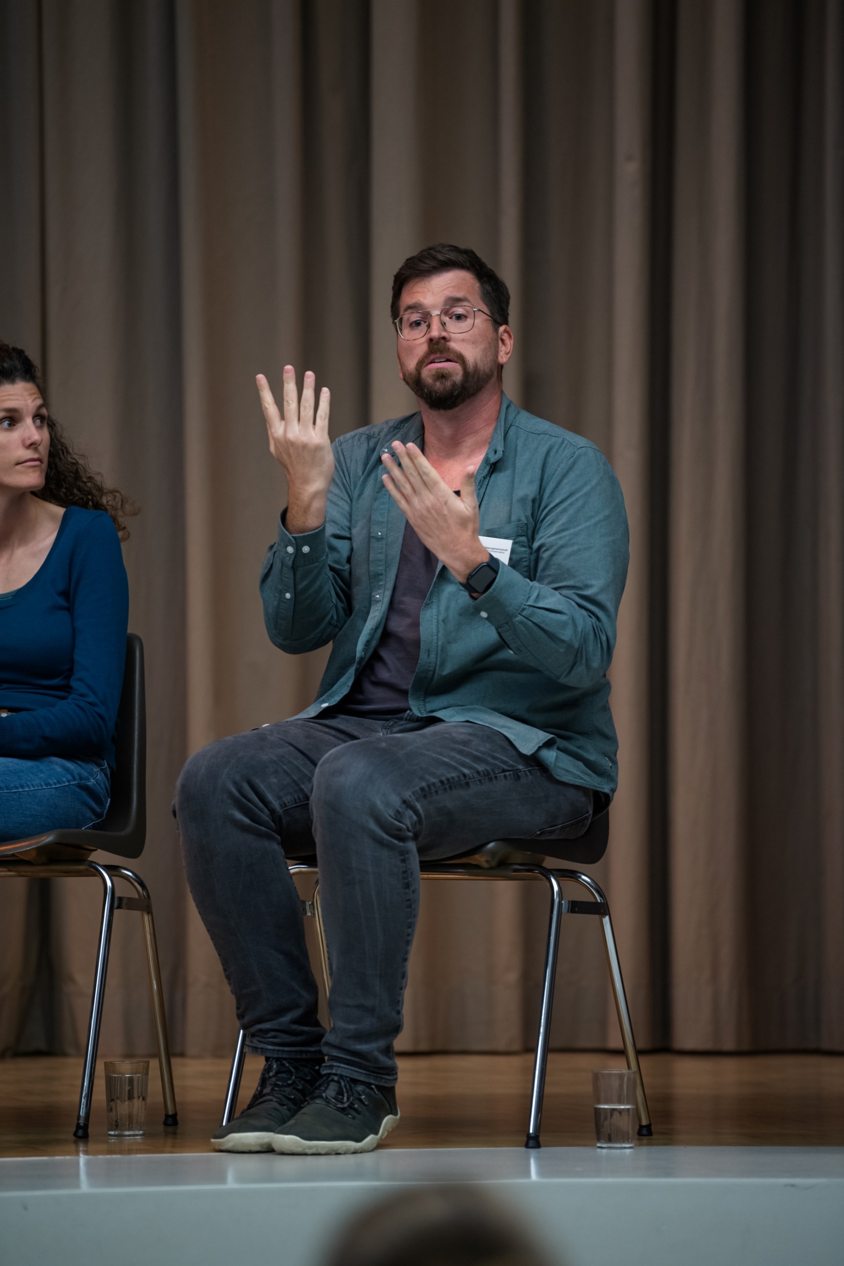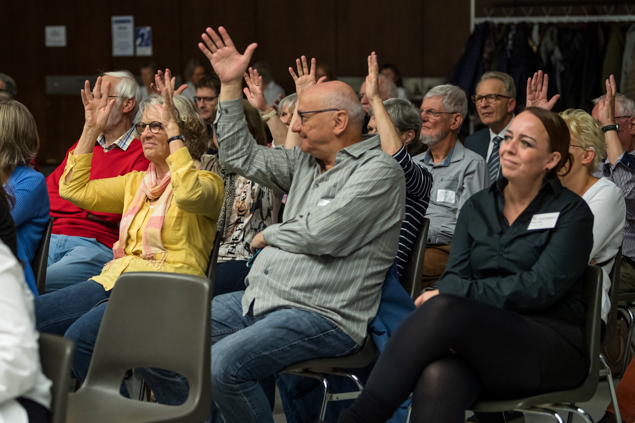 - Theo Juker, Präsident IGGH, macht ein Selfie von der Diskussionsrunde.