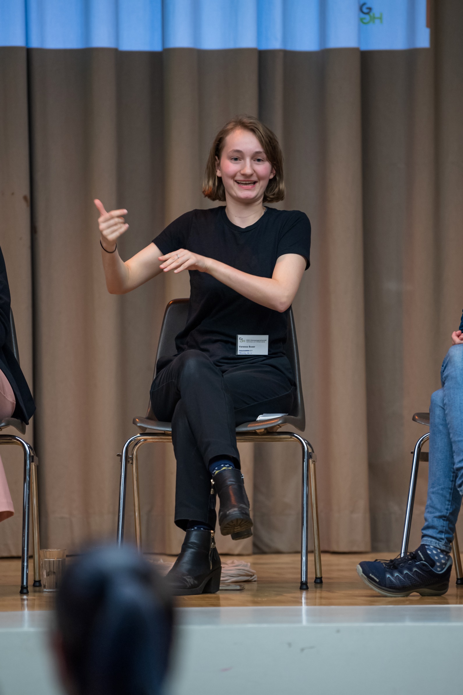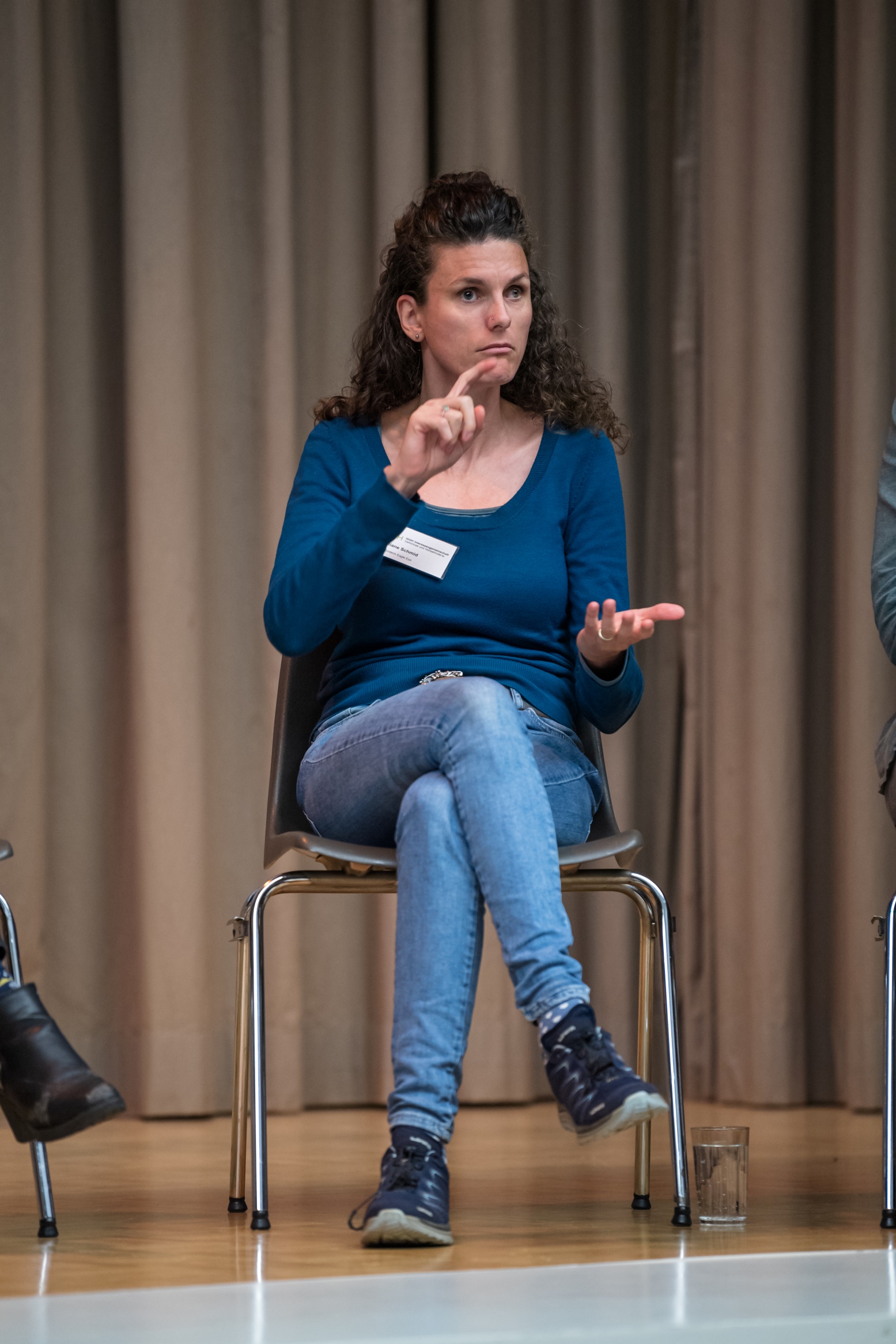 In der von Theo Juker, Präsident IGGH, moderierten Podiumsdiskussion wird schnell klar, dass die Schweiz im internationalen Vergleich viel Nachholbedarf hat. Gemäss Urs Germann hat der Ausschuss der UNO-Behindertenrechtskonvention in seinem letzten Bericht viele Defizite aufgelistet. Vanessa Buser verweist auf die USA, die im Bereich der Gebärdensprache viel weiter seien. Die Vizepräsidentin der Swiss Deaf Youth SDY fordert von der Schweiz eine echte Anerkennung der Gebärdensprache.