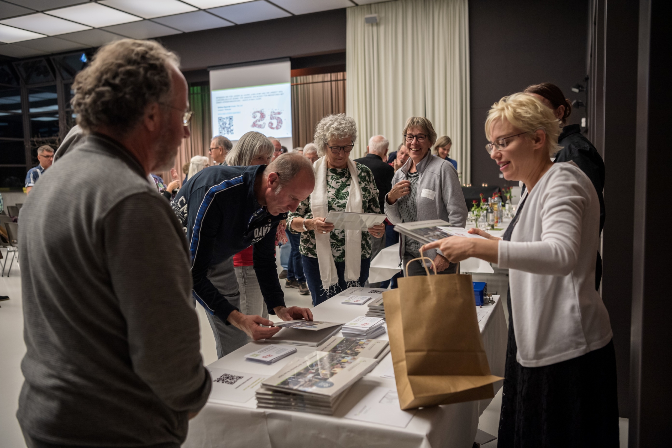 Beim Apéro nach der Podiumsdiskussion gingen die Lichter aus. Scheinwerfer erhellten die weissen Handschuhe von Theo Juker an. Er präsentierte eine Überraschung: das Chronikbuch der IGGH mit dem Titel «Zusammen stärker: die Geschichte der IGGH».